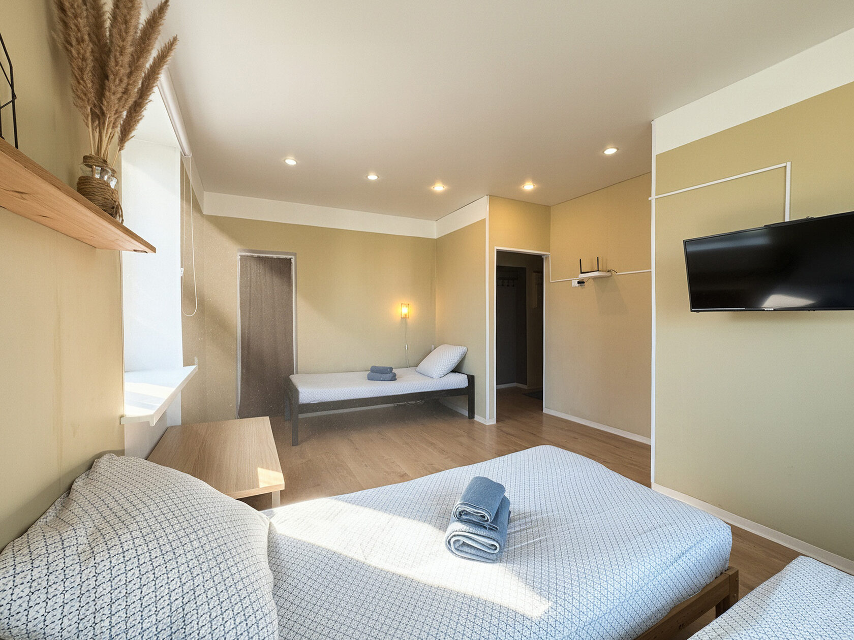 В КВАРТИРЕ ЕСТЬ: -Две двуспальные кровати с ортопедическими матрасами (80х200) -Диван (154х200) -Кухня со всем необходимым (холодильник, посудомойка, варочная панель, микроволновая печь, чайник, тостер,а так же посуда и приборы) -Стиральная машина, фен, утюг, сушилка для одежды -Smart TV (онлайн-кинотеатры, YouTube) и высокоскоростной Wi-Fi -Шкаф -Шампунь, гель для душа, жидкое мыло, стиральный порошок -На каждого гостя предусмотрено по 2 полотенца. Замена белья и полотенец производится при бронировании свыше 7 суток бесплатно. В иных случаях за дополнительную плату.