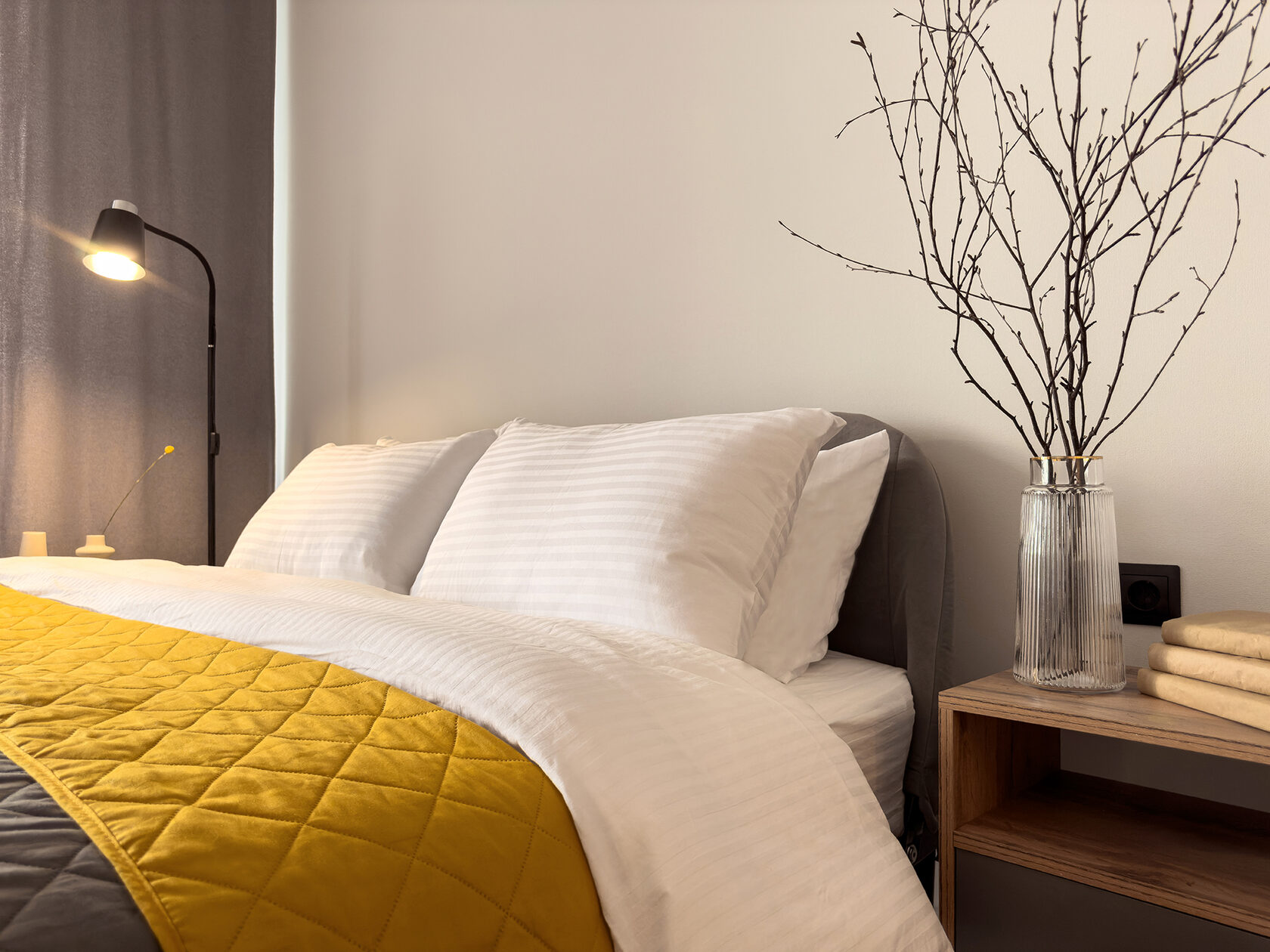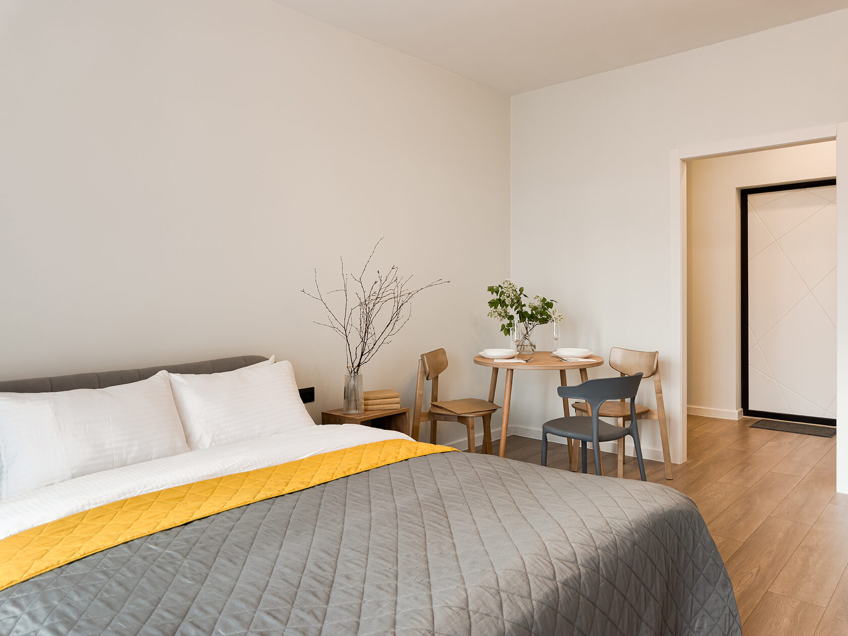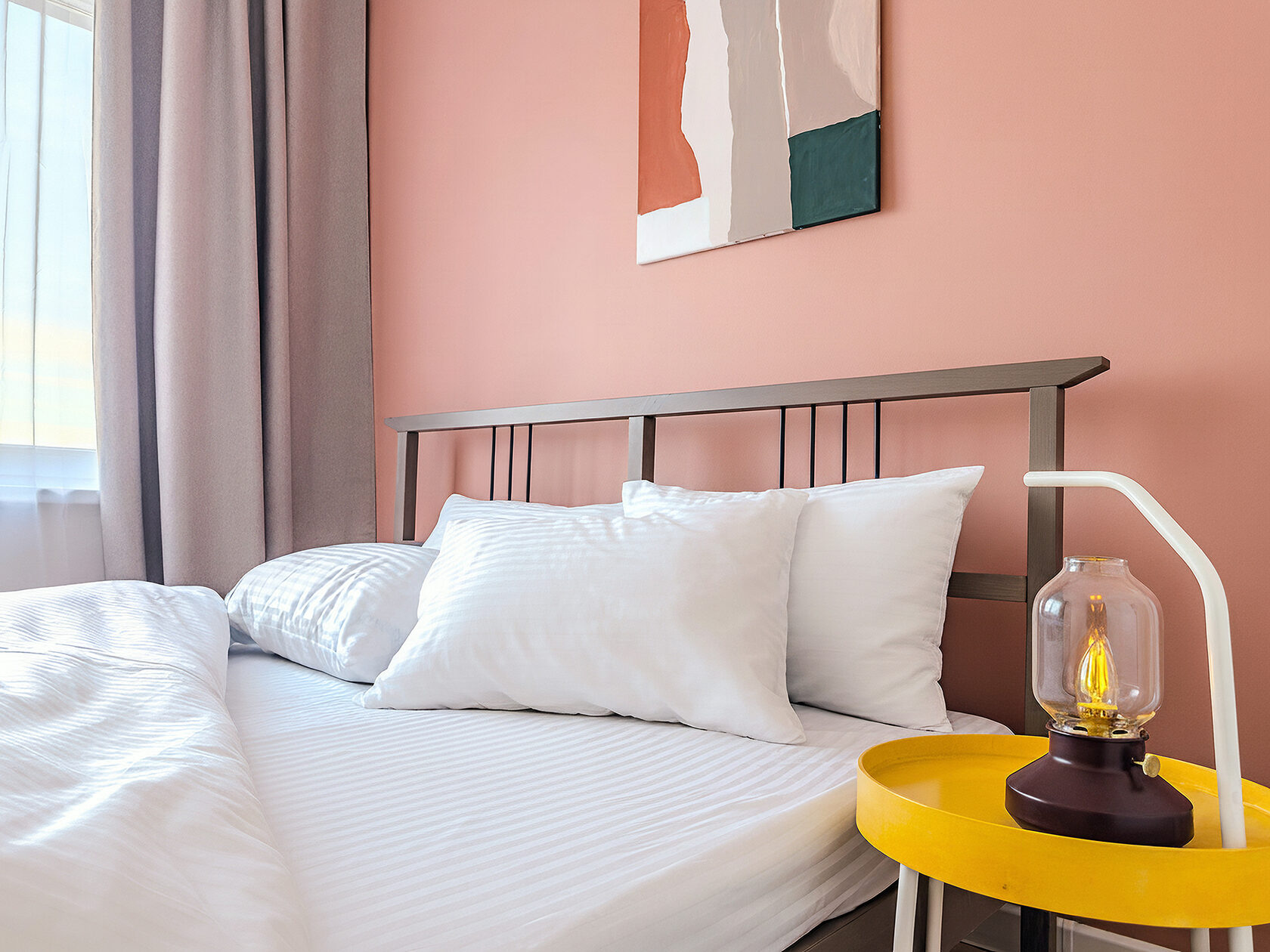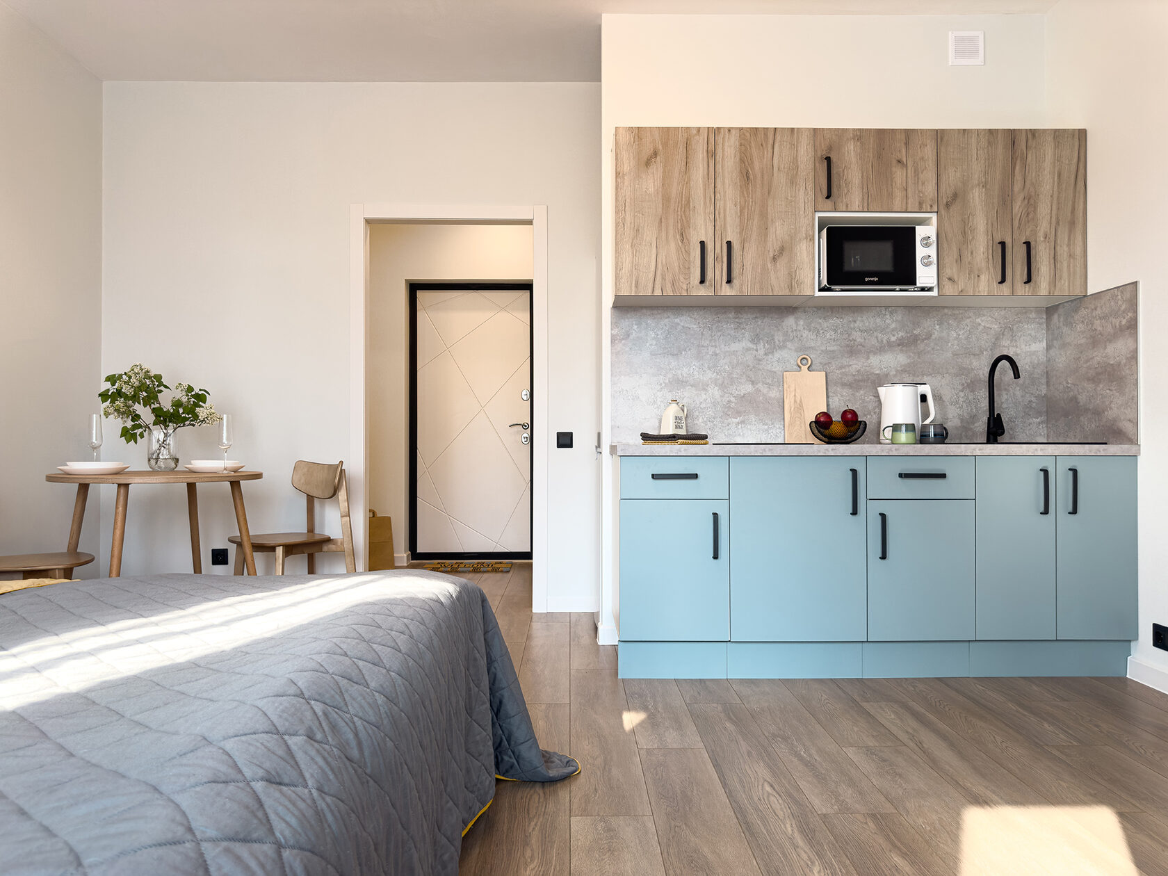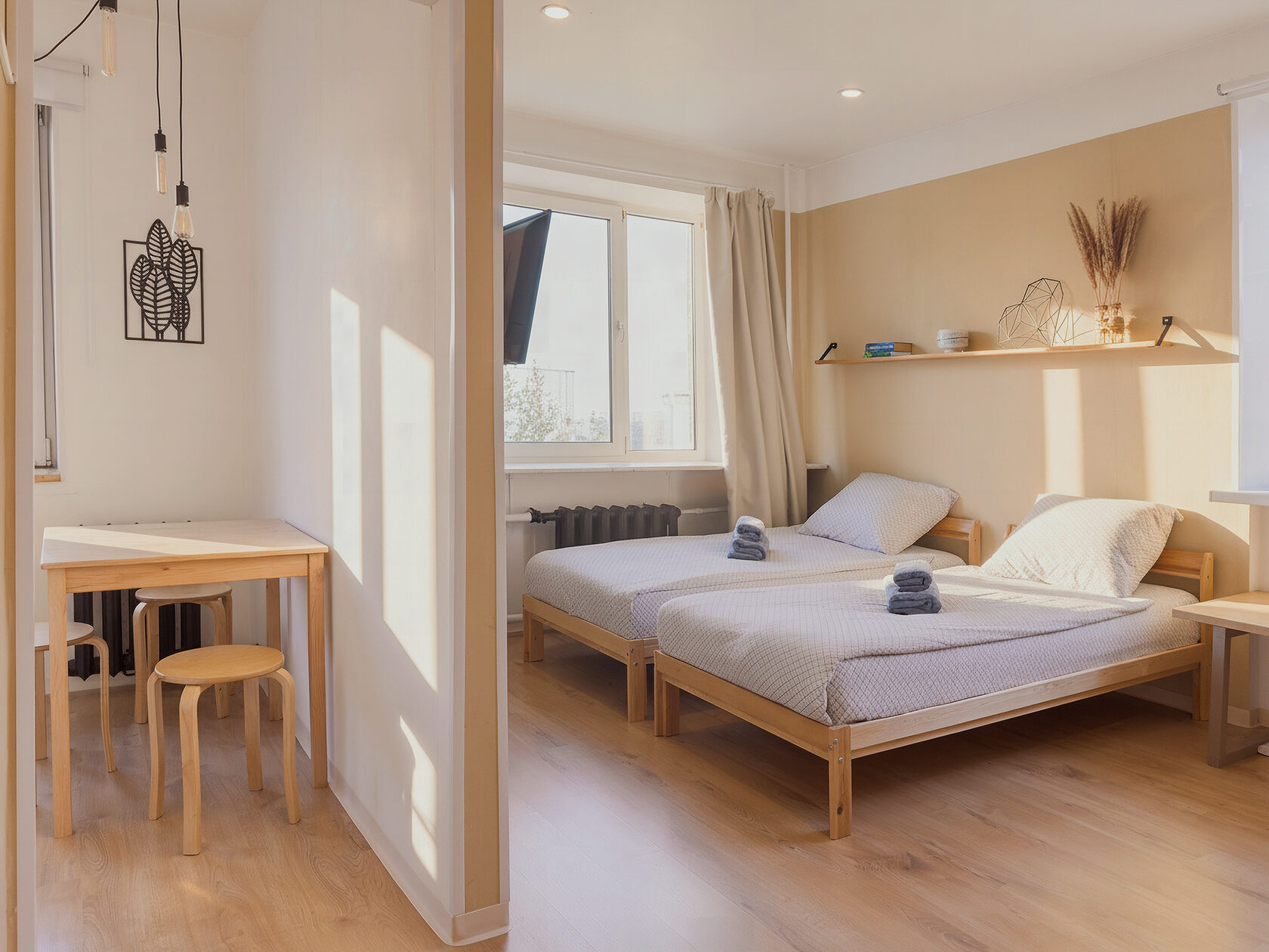 НАШИ ПРЕИМУЩЕСТВА Во всей сети апартаментов действует единый стандарт качества, а именно: * Чистое постельное белье для каждых новых гостей * удобный матрас. * Профессиональный клининг. * Наличие необходимых в быту вещей: средства гигиены, посуда, техника. * Качественный сервис. По-любому вопросу можете обратиться в нашу службу заботы, с удовольствием поможем решить все вопросы.